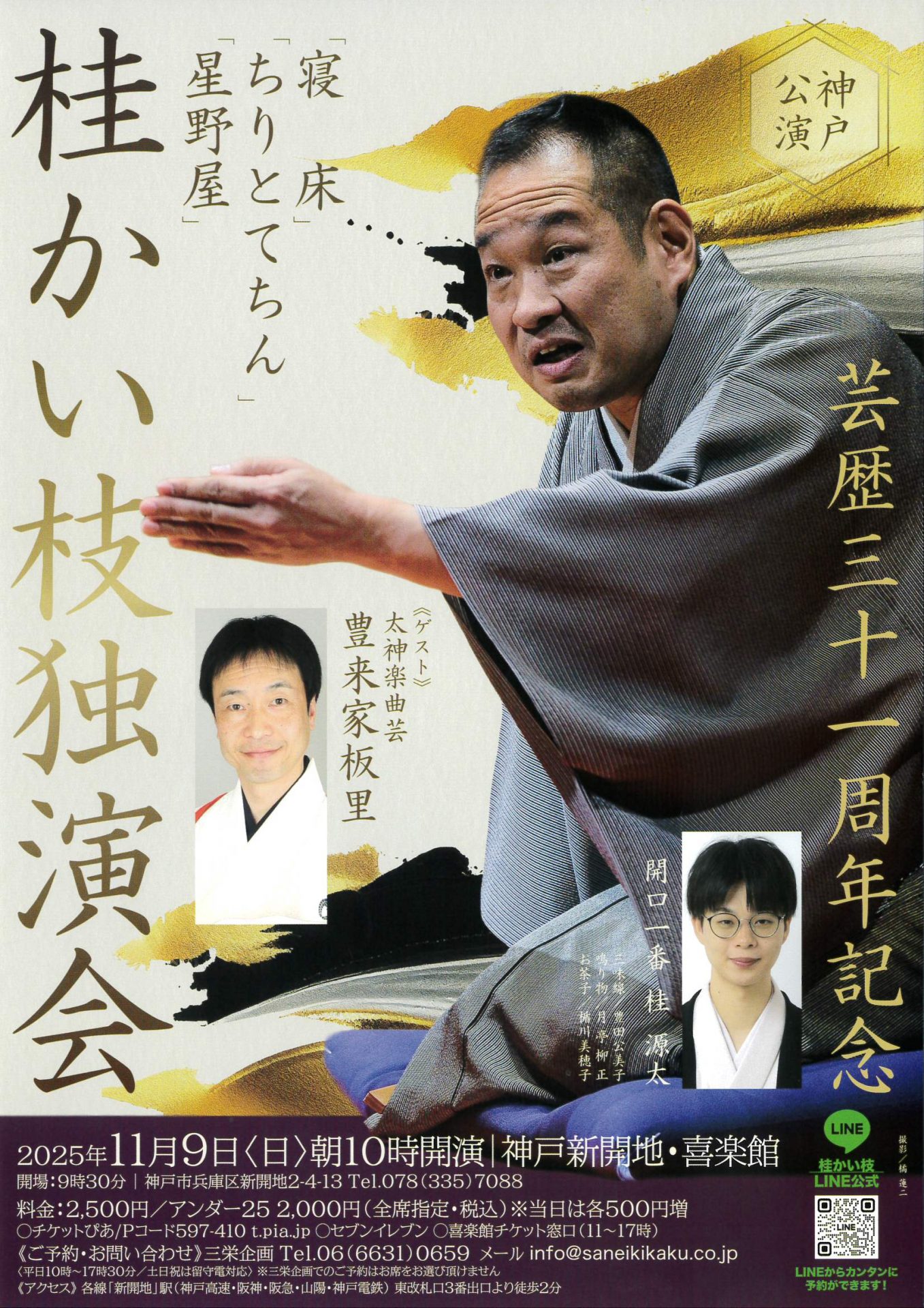 桂かい枝 芸歴三十一周年記念独演会 (神戸新開地・喜楽館) 2025.11.09(日)開催