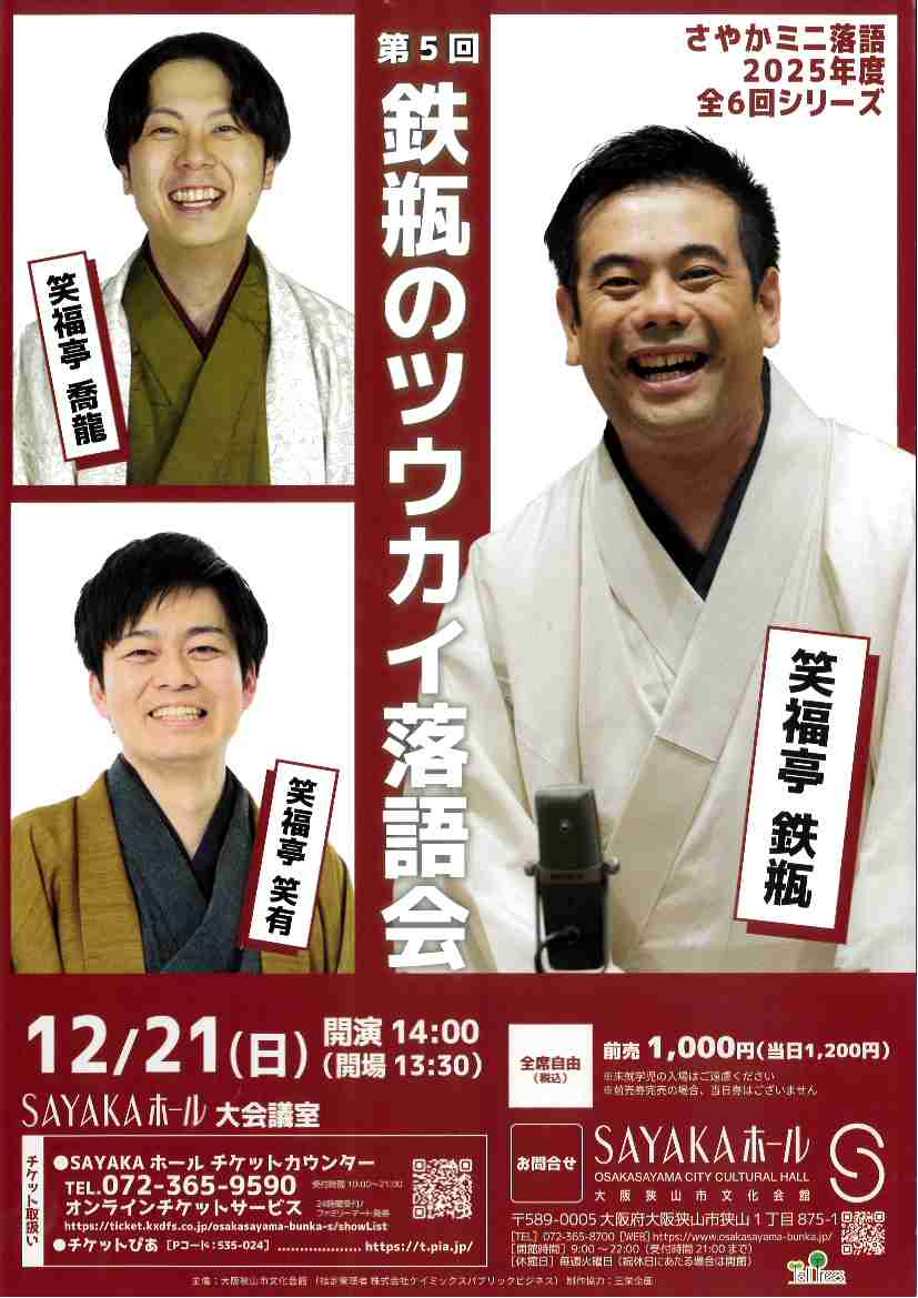 さやかミニ落語 鉄瓶のツウカイ落語会 (SAYAKAホール/大会議室) 2025.12.21(日)開催