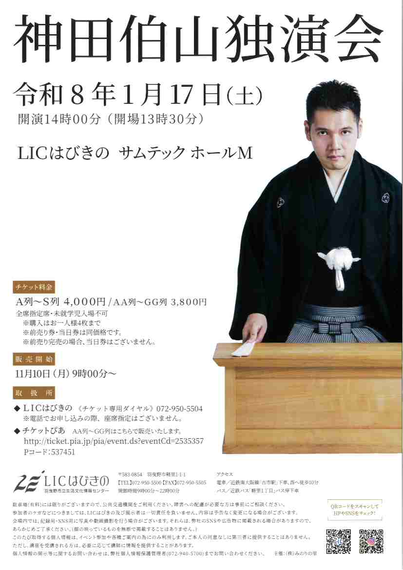 神田伯山独演会 (LICはびきの/サムテック ホールM) 2026.01.17(土)開催