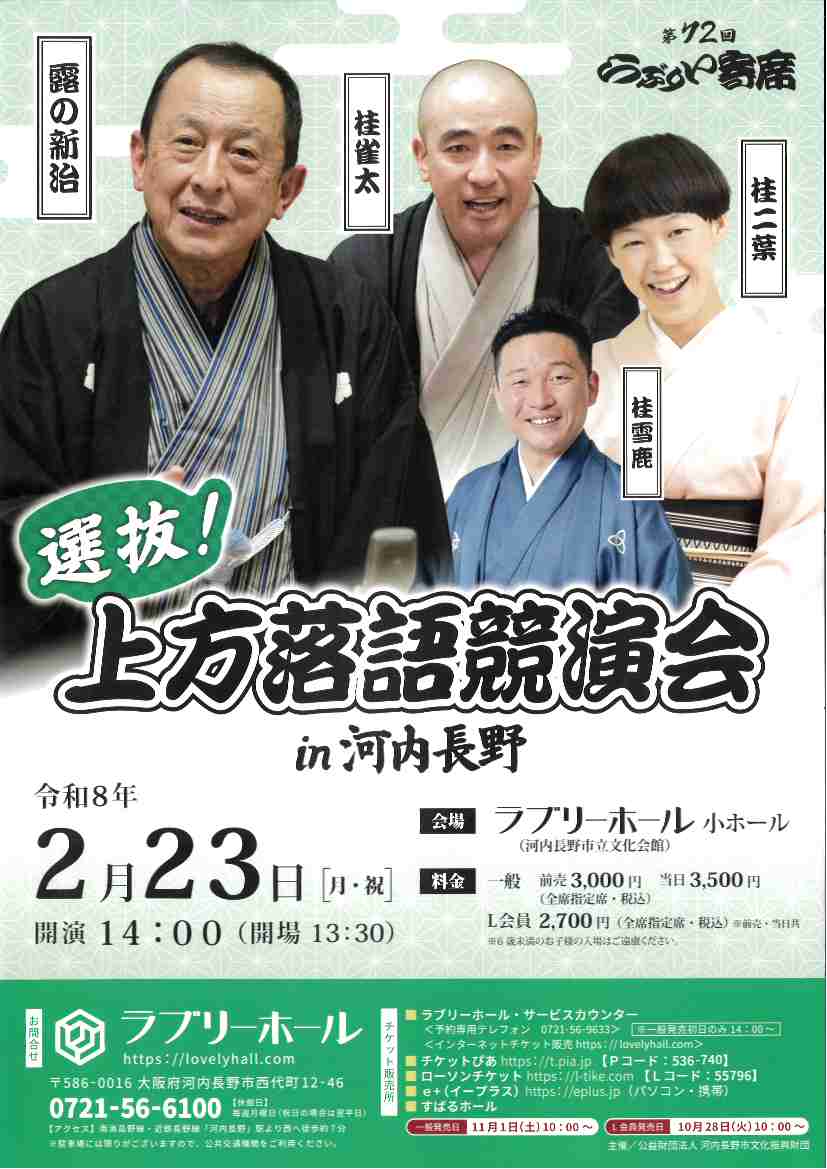 選抜! 上方落語競演会 in河内長野 (ラブリーホール 小ホール) 2026.02.23(月)開催